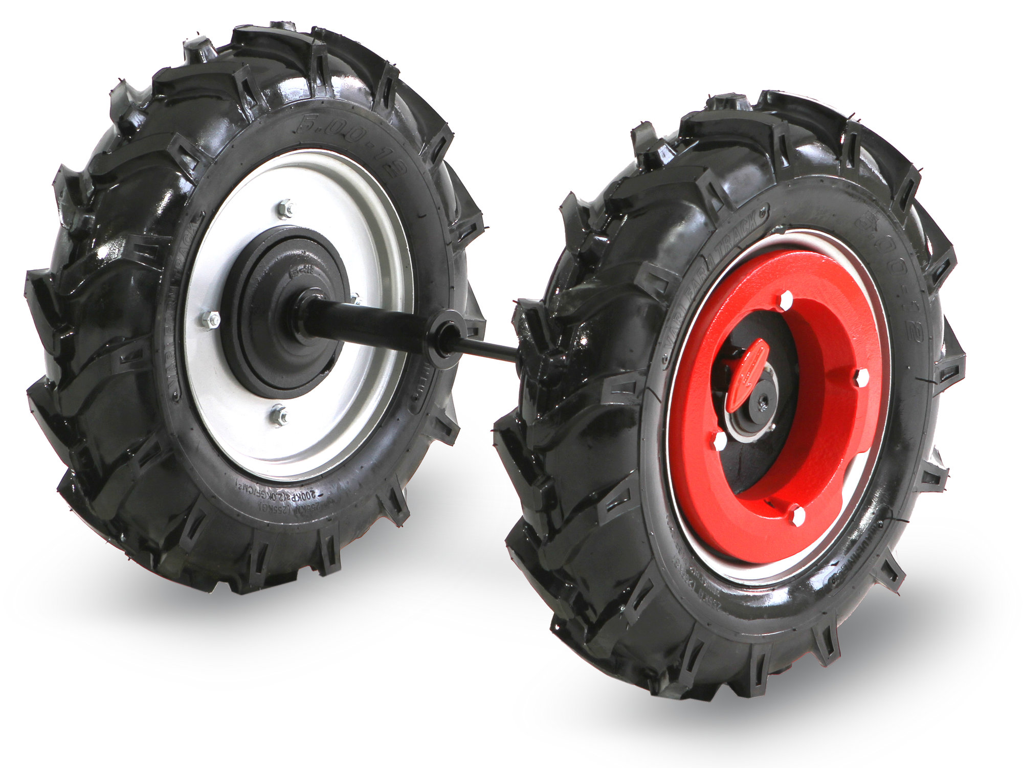 Tažná náprava TN-01 s 12" koly slouží k pojezdu malotraktoru VARI IV. Kola nápravy jsou připojeny k převodové skříni pomocí dlouhého osového čepu.