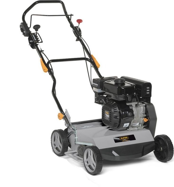 Motorový provzdušňovač trávníků ALPINA ASC 40 G, šířka pracovního záběru je 400 mm, plynulé centrální nastavením výšky, šasi je z oceli, sběrný koš o objemu 50 l. Hřídel je osazena 32 noži. Hřídel je uložena v masivních ložiscích. Hmotnost provzdušňovače je 44 kg.